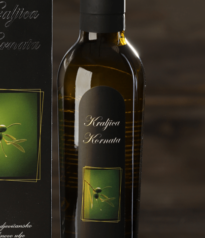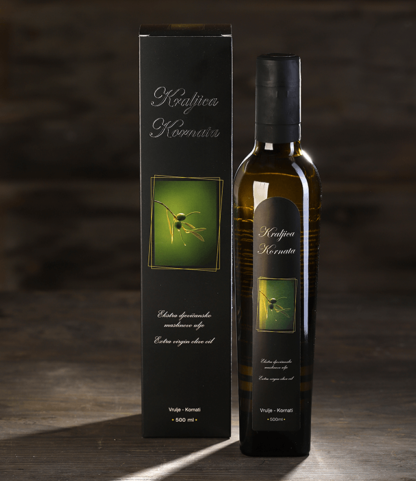 This edition, classic but again decorative with a special bottle design was the project beginning of the brand – Kraljica Kornata. About 10 years ago, our family decision was to revitalize and renew neglected, forgotten olive trees. The result was this classic edition of the extra virgin olive oil, also originating from Trtuša field which is a part of the NP Kornati. The classic edition is a winner of many golden medals since 2010 both for design and for oil quality. The reason for purchase of this olive oil lies in the location specificity, ecological growth and processing, which differs from the usual on the market.